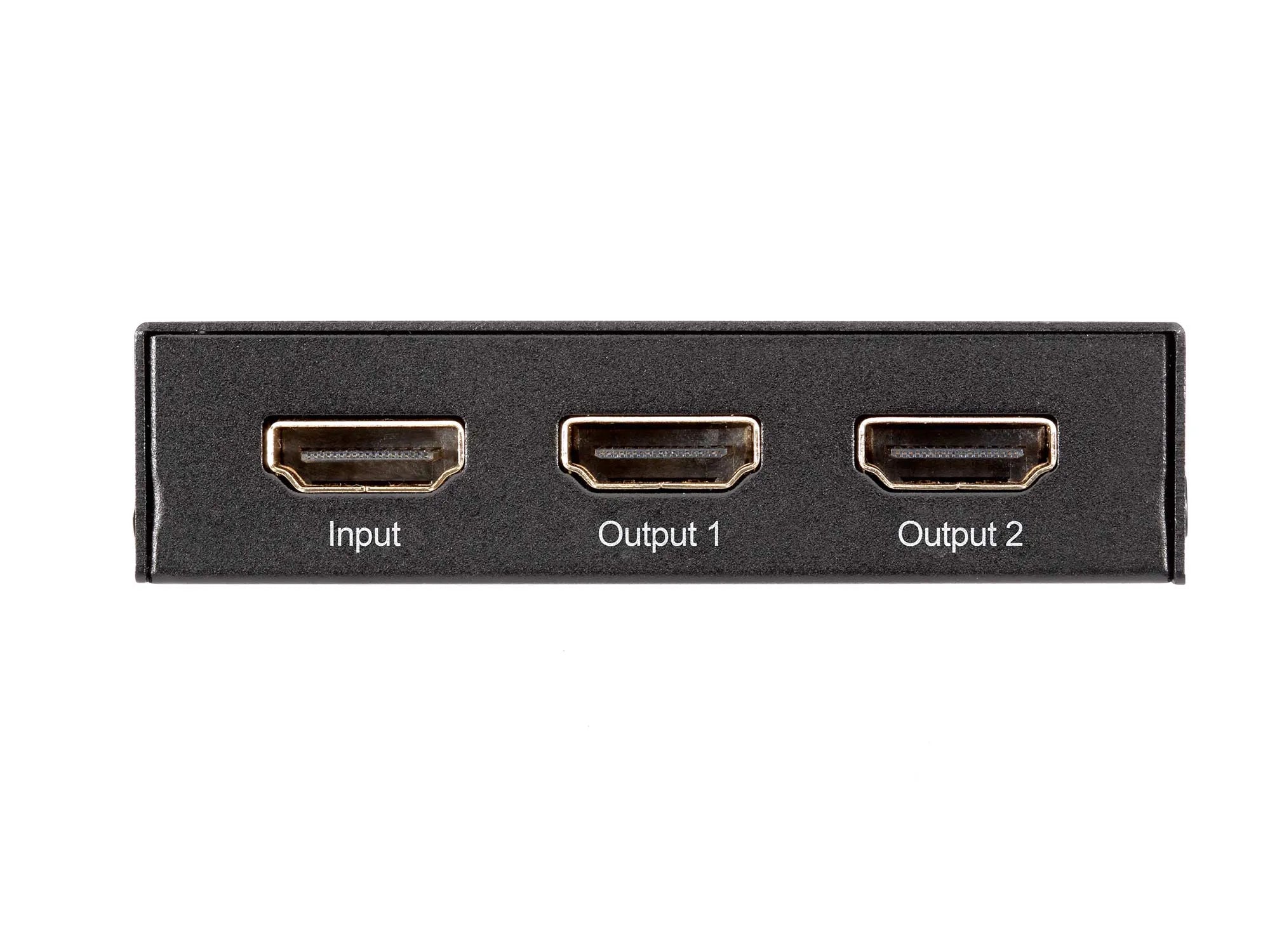Этот HDMI-разветвитель одновременно распределяет изображение и звук с HDMI-источника (например, Blu-ray-плеера, PS4) на два дисплея (например, UHD-телевизора или проектора). Разветвитель совместим с HDMI 2.0 и поддерживает форматы до 4K с частотой обновления 50 или 60 Гц, а также стандарт защиты от копирования HDCP 2.2. Он также совместим с более низкими форматами, такими как 1080p. Разветвитель распознаёт подключенные дисплеи и автоматически выбирает оптимальный формат воспроизведения благодаря механизму EDID.