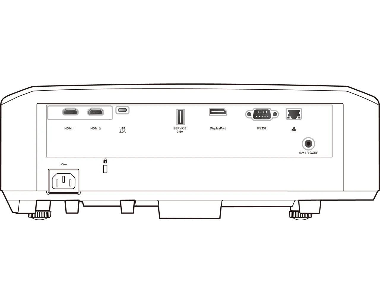 - Разъемы: DisplayPort, HDMI x2 с поддержкой HDCP 2.3, USB Type C, USB Type A (питание 1,5 А), а также RS-232, LAN и Trigger (12 В)