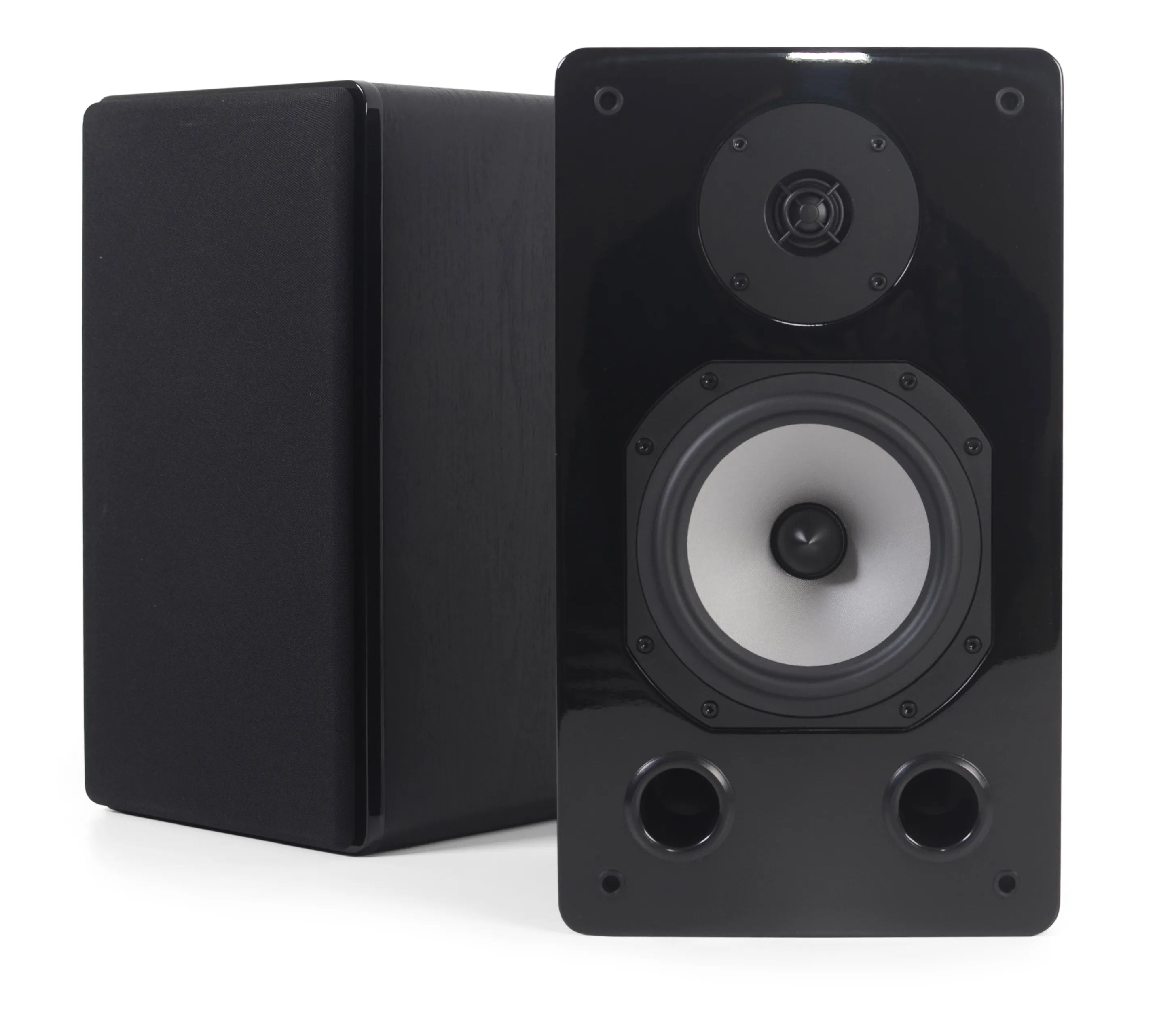 Порты фазоинвертора расположены спереди, чтобы получить глубокий басовый звук, но в то же время, чтобы можно было закрепить их прямо на стене.