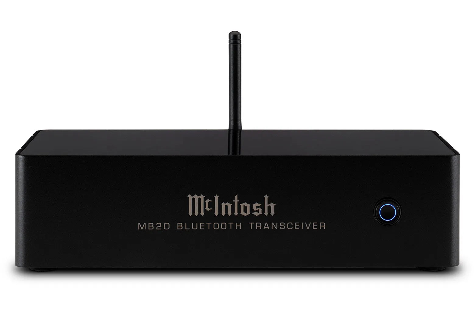McIntosh MB20 — универсальный Bluetooth-передатчик-приёмник, позволяющий добавить беспроводную потоковую передачу звука к любому поколению аудиосистем McIntosh или других производителей. Он поддерживает Bluetooth 5.0, кодеки aptX HD, Low Latency и AAC, а также имеет аналоговые и цифровые входы/выходы, включая балансные. Он может стать отличным решением как для модернизации аудиосистем, так и для беспроводной передачи звука между домашними системами.