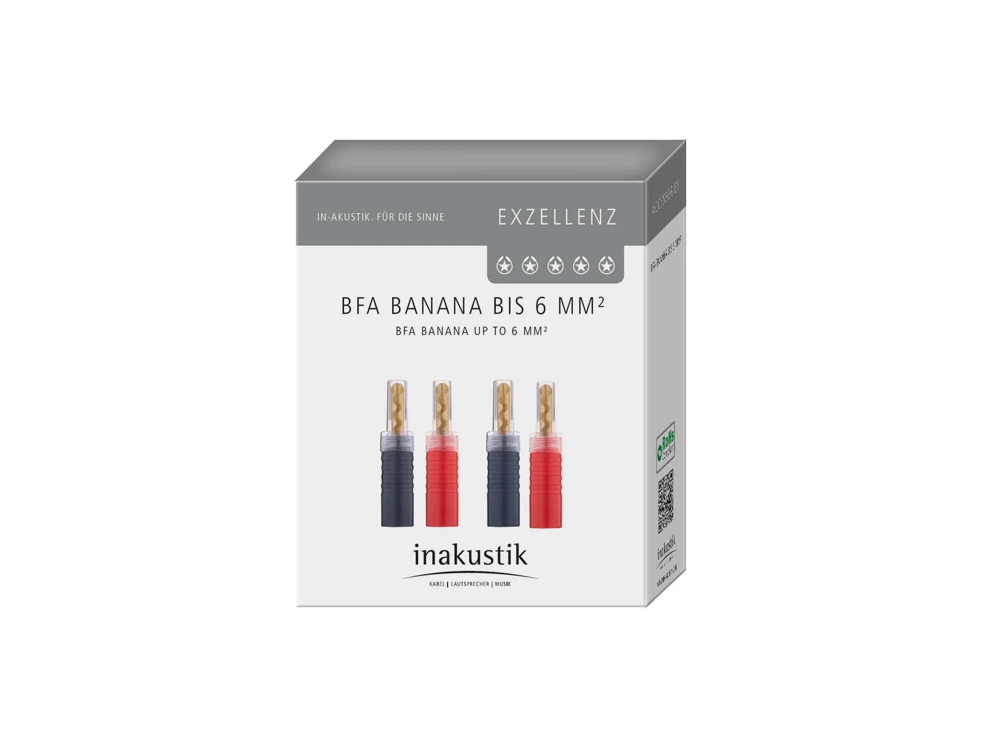 Компания in-akustik разработала соединитель для акустических кабелей с разъёмами типа «банан» BFA, отвечающий строгим требованиям стандарта BFA (Британская федерация аудиотехники). Подходит для кабелей сечением до 6,0 мм². Кодировка: красно-чёрная или бело-чёрная. С винтовыми зажимами.