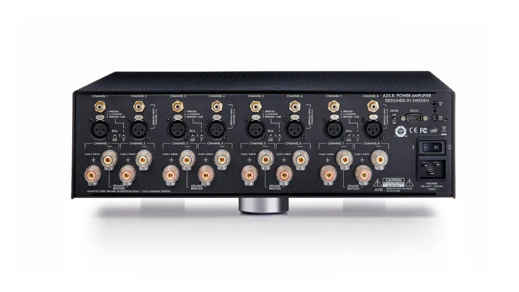 A35.8 — не только самый мощный усилитель, созданный Primare, но и самый гибкий, способный удовлетворить потребности практически любой высокопроизводительной двух- и многоканальной системы благодаря возможности мостового соединения каждой пары из восьми каналов в моно для невероятного уровня выходной мощности — до 1500 Вт в общей сложности.