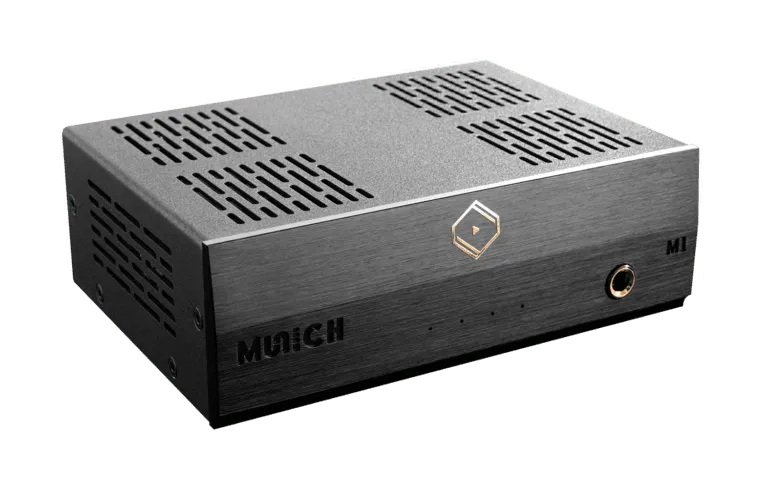 Silent Angel Munich M1 — компактный и функциональный сетевой плеер высокого качества, созданный для меломанов, желающих подключить больше аудиоисточников к своей Hi-Fi-системе и наслаждаться максимально чистым звучанием. Аппаратное и программное обеспечение устройства M1 оптимизировано для улучшения прозрачности и детализации звука. Удобное управление через мобильное приложение VitOS Orbiter позволяет легко управлять музыкой и наслаждаться потоковой передачей музыки высокого разрешения.
