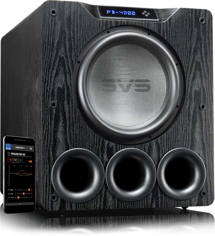 - Высокопроизводительный динамик сабвуфера серии SVS 4000 — оптимизирован для фазоинверторного корпуса.