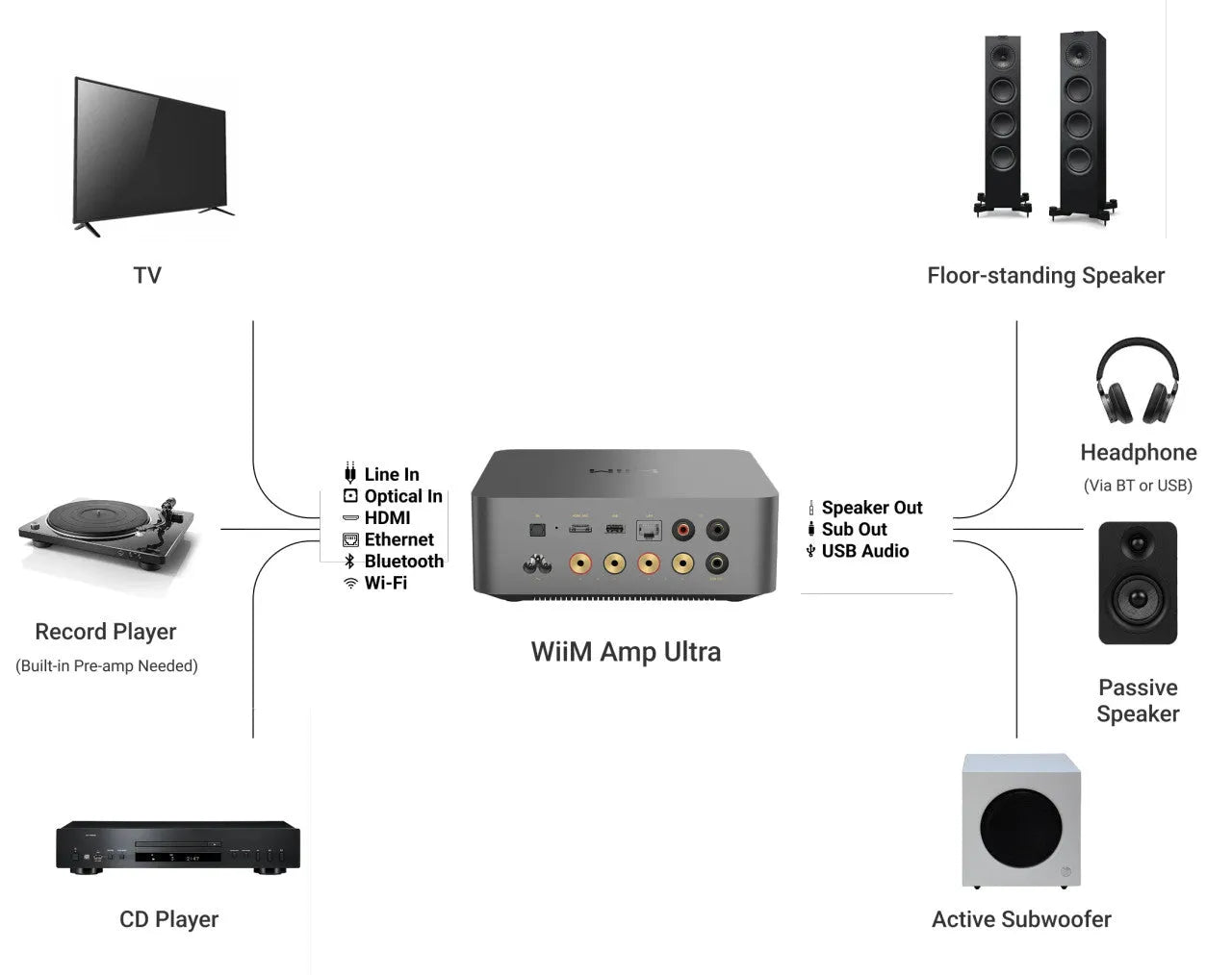 Встречайте WiiM Amp Ultra — наш самый продвинутый на сегодняшний день потоковый усилитель. Созданный для меломанов, любителей домашнего кинотеатра и умного дома, он обеспечивает впечатляющую мощность 100 Вт на канал (8 Ом) со сверхнизким уровнем искажений, обеспечивая высококачественный звук в каждом уголке вашего пространства. Будь то винил, Spotify или кинотеатральный объёмный звук — вы услышите его как никогда раньше.