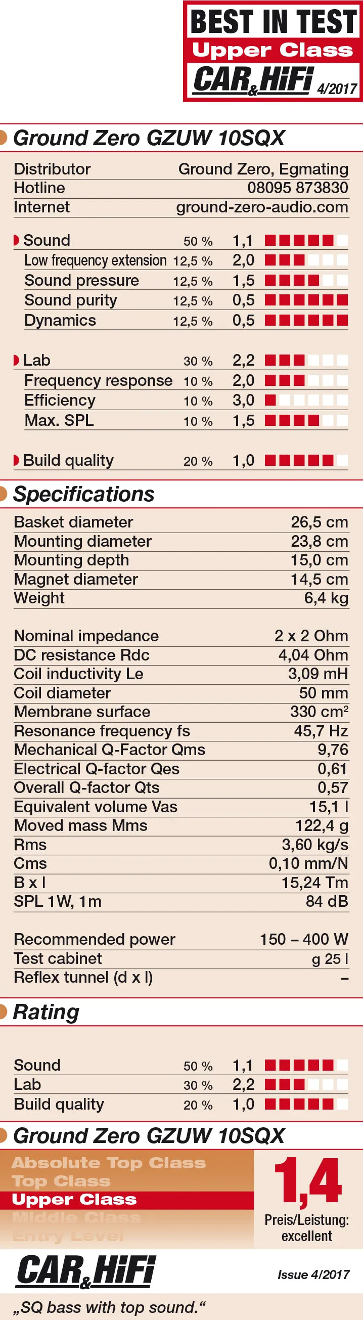 Сабвуфер Ground Zero GZUW 10SQX, 450 Вт, 25 см - Перед покупкой, пожалуйста, уточните наличие товара. Если его нет, его можно заказать, и он будет доставлен в течение 2–21 дня.